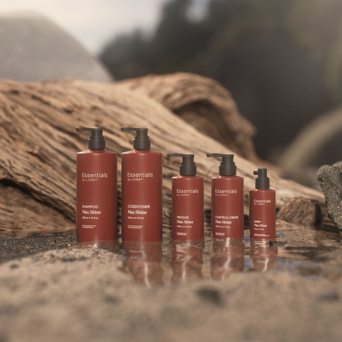 Max Shine is a shine-enhancing routine—shampoo, conditioner, masque, control crème, and spray—made to help reduce the look of dullness and leave hair feeling silky, light, and smooth.