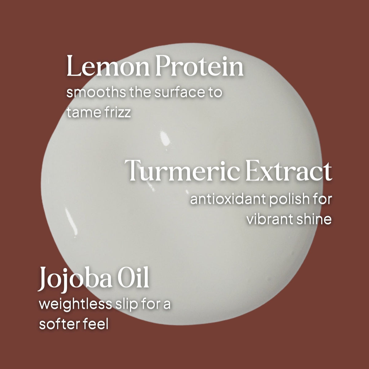 Max Shine Control Crème is a warm, spiced-amber styling gloss that sets a smooth, polished look with medium–strong control. Lemon protein lends surface smoothness, turmeric extract supports a vibrant, refined finish, and jojoba oil adds weightless slip for easy definition on damp hair. On dry hair, the soft crème can be used to define or piece strands.