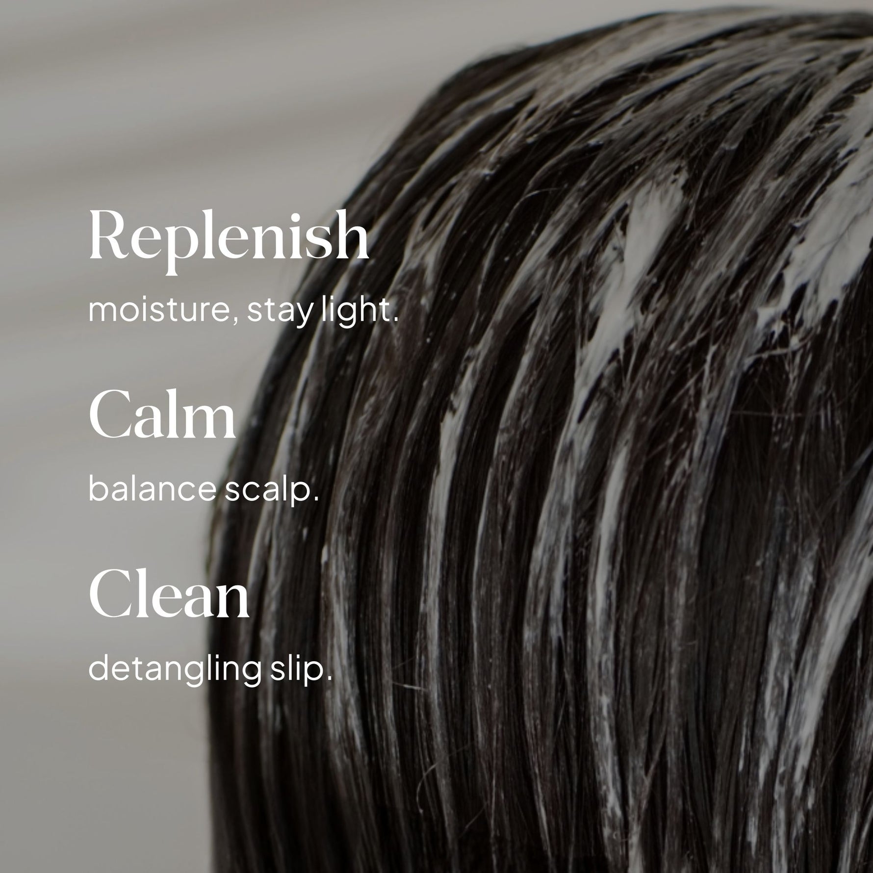 Healthy Scalp Conditioner is a lightweight rosemary–peppermint finish that replenishes moisture without residue and leaves hair with easy, even slip. Carrot protein softens without weight, while a touch of celery seed extract keeps roots feeling fresh and light. Panthenol adds gentle body through the lengths. Rinses clean with a crisp, minty finish, an effortless follow-up to your scalp-care wash.